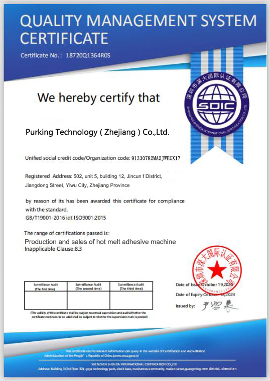 Purking Tekonolosi (Zhejiang) Co., Ltd.na faavaeina i le 2014, O se polofesa vevela liusuavai adhesivemachine kamupani tuʻufaʻatasia suʻesuʻega, atinaʻe, maketiga, personneltraining ma ina ua maeʻa-faʻatauina tautua, O le kamupani e sili atu nai lo 1000 sikuea o fale gaosi. O le kamupani faʻatau ofisa o loʻo tu iYiwu City, Zhejiang Itumalo. O le gaosiga ma potopoto potopoto o tuʻu i le Dongguan City, Guangdong Itumalo. |